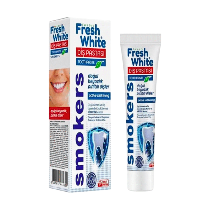 Dentifrice Fresh White Smokers 90g, spécialement conçu pour éliminer les taches liées au tabac et redonner éclat et fraîcheur à