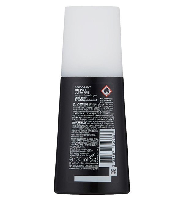 VICHY HOMME Déodorant Vaporisateur Ultra-Frais garde les aisselles fraîches et sans odeur pendant 24h.